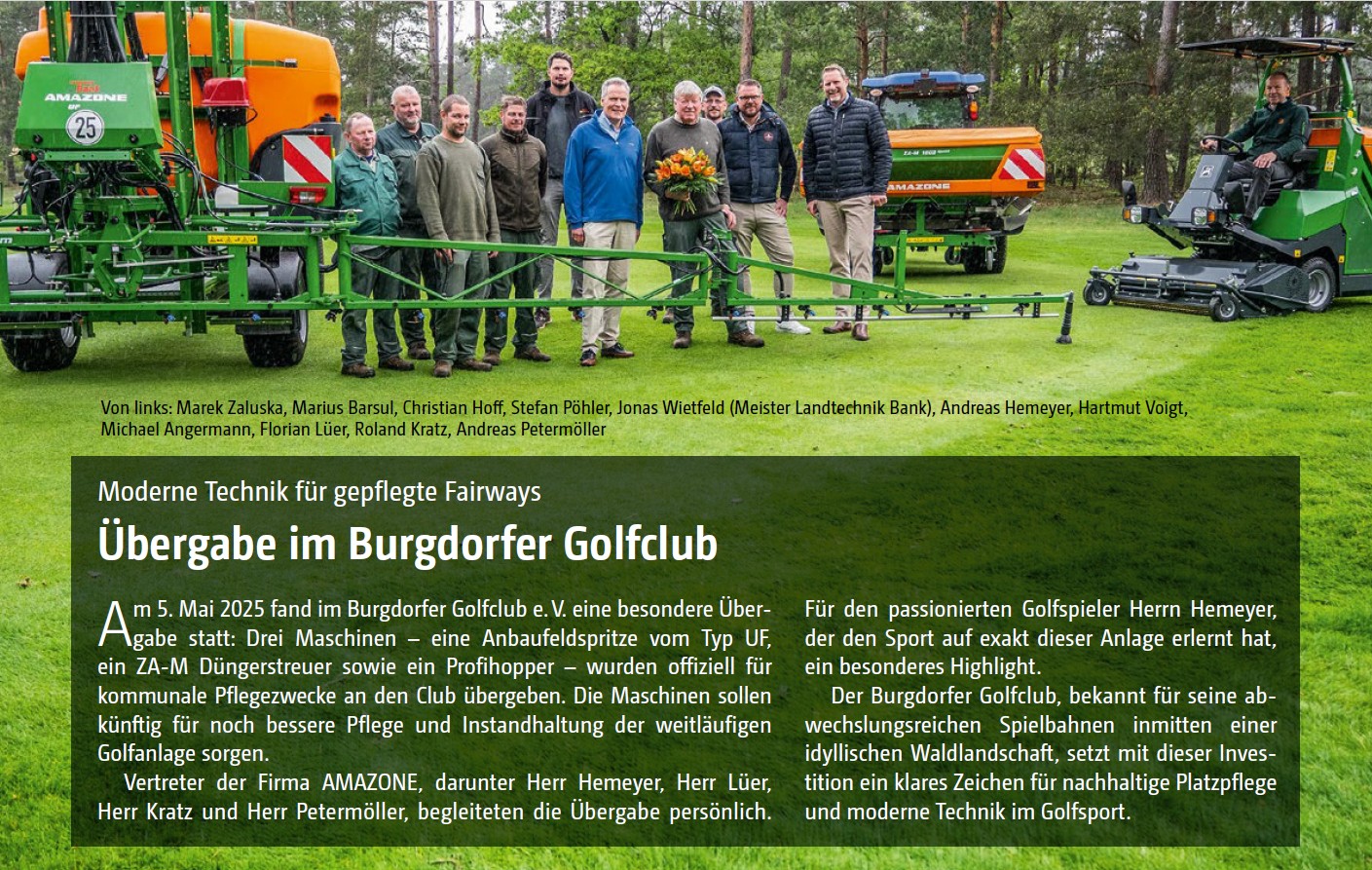 Am 05.05.2025 durften wir dem Burgdorfer Golfclub 3 Maschinen übergeben: